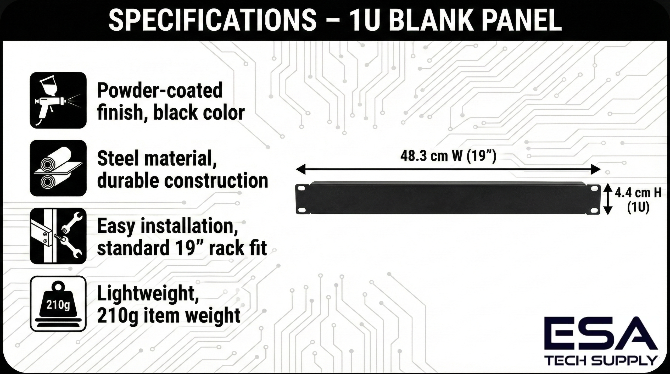 Covers empty rack spaces for a neat, clean appearance