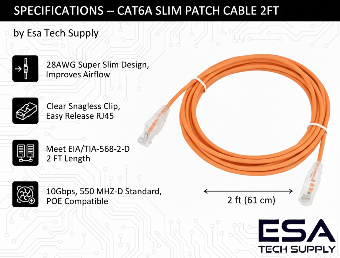 【Super Slim】The 28 AWG 1 foot ethernet cable is at least 50% smaller in diameter than 24 AWG cat 6 patch cables. Makes cat 6 ethernet cable 1 ft easy to route through cable management panels.